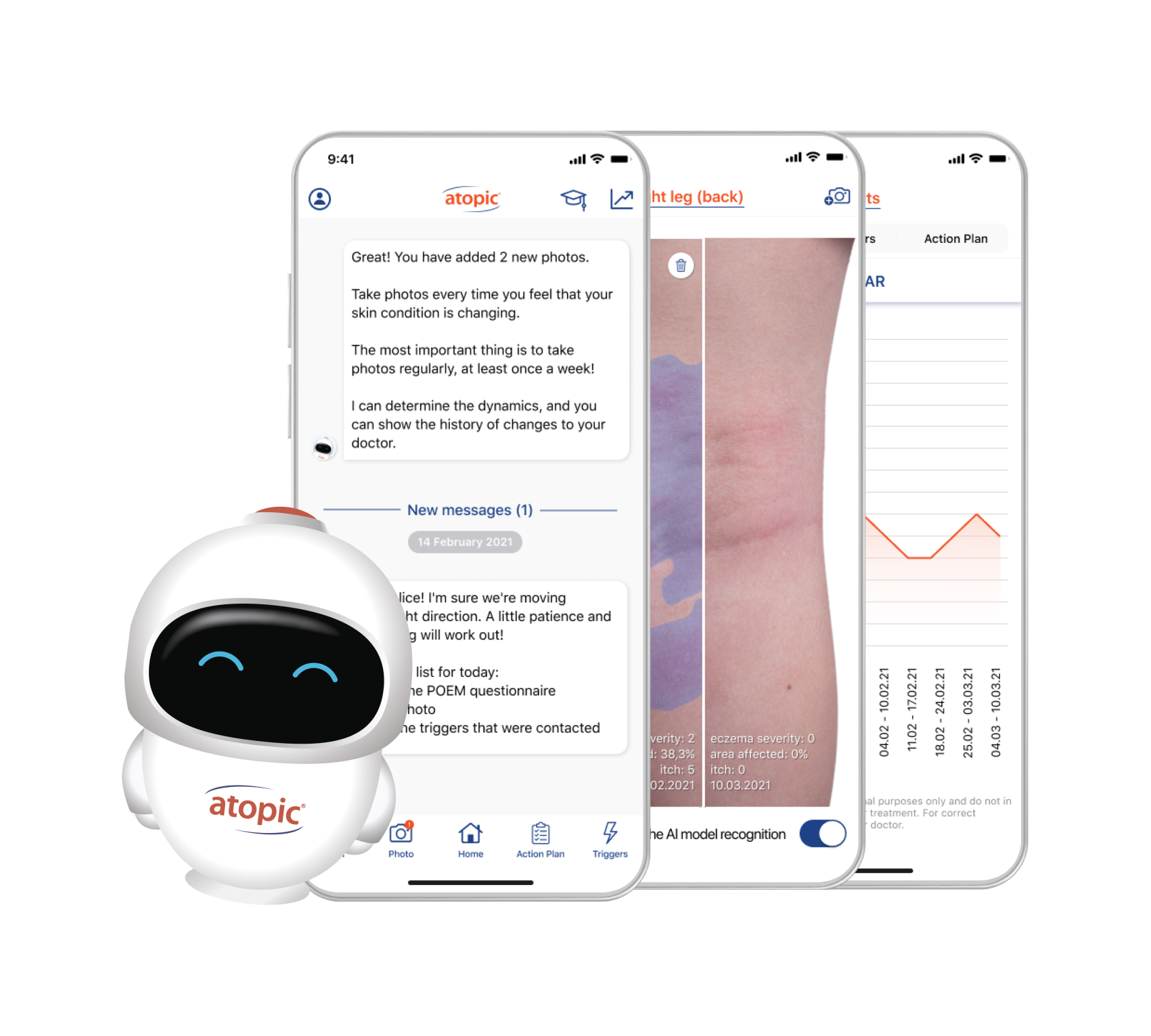Our science-backed app will guide you in taking the right steps to improve skin health and quality of life in atopic dermatitis.